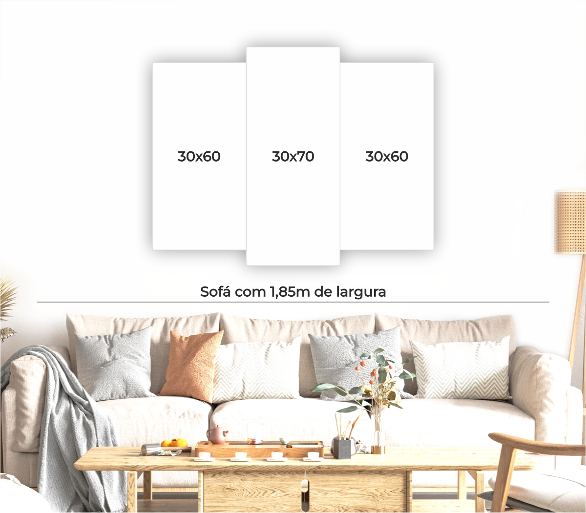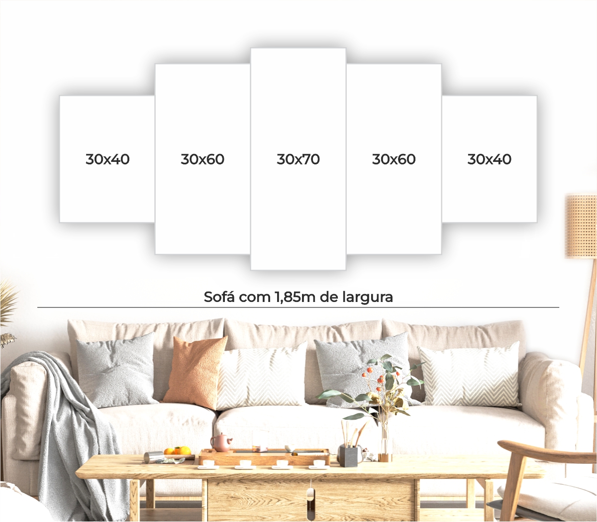 Para facilitar sua escolha, disponibilizamos um guia visual que demonstra o tamanho real dos quadros em diferentes medidas. Assim, você consegue ter uma noção clara de como cada formato ficará aplicado na parede, ajudando a escolher o tamanho ideal para o seu ambiente.